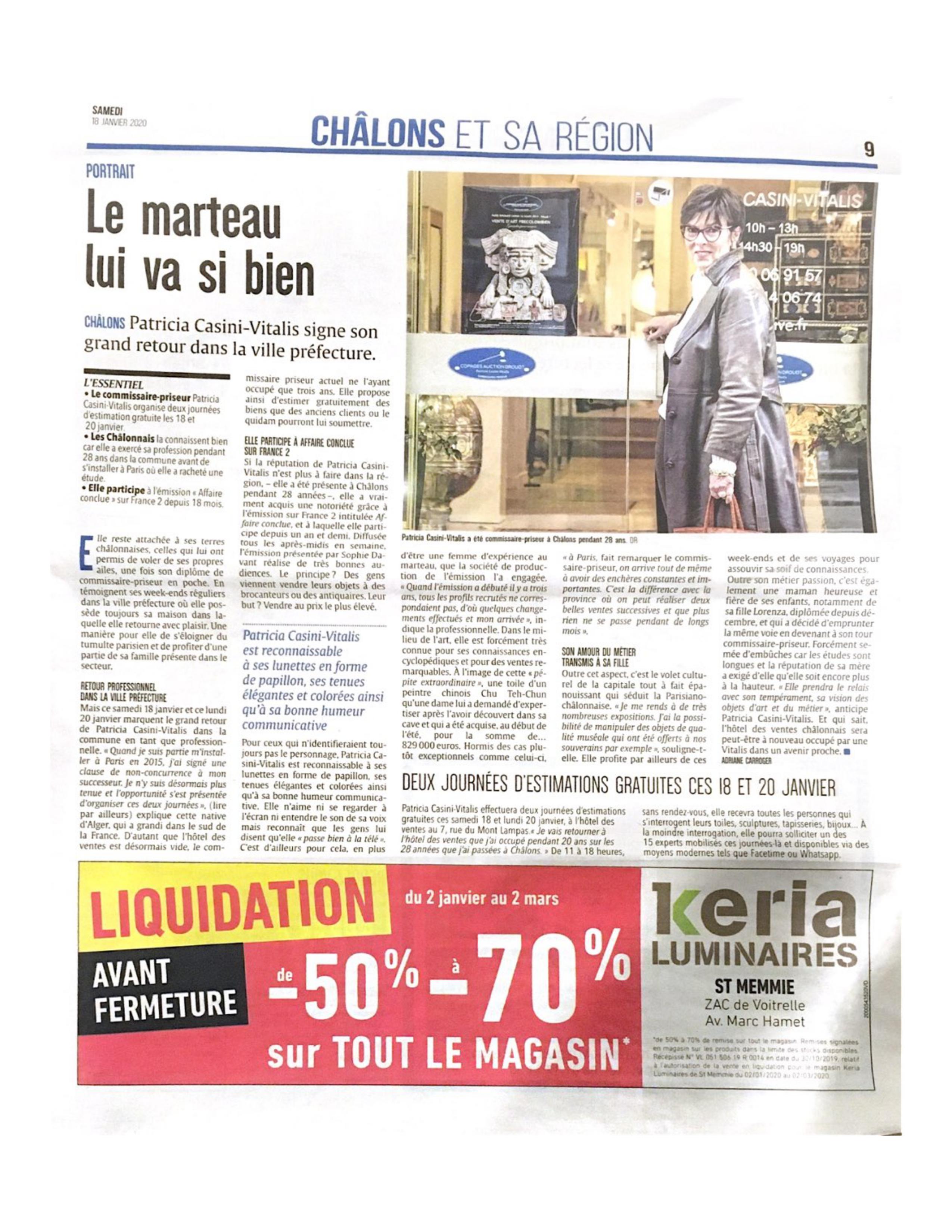 A l'occasion des journées d'estimations gratuites organisées à Chalons en Champagne les 18 et 20 Janvier 2020 par Me Casini-Vitalis, découvrez l'article de l'Union.
